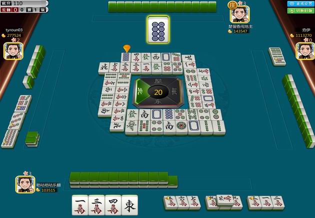 庄家 14张牌开打,每次打一张,其他三家按照逆时针顺序开打,每次打之前如果不出现吃,碰,杠,胡,则系统会自动摸牌。