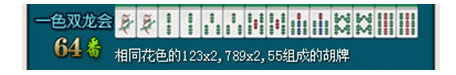 胡牌说明:基本胡牌型的一种,以七种对子成和,24番,如果手中有四张相同牌,不能开杠;如果全是风牌(东南西北中发白)的七小对,则是64番。